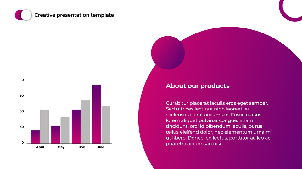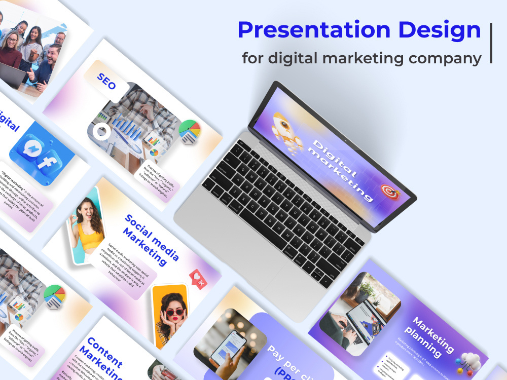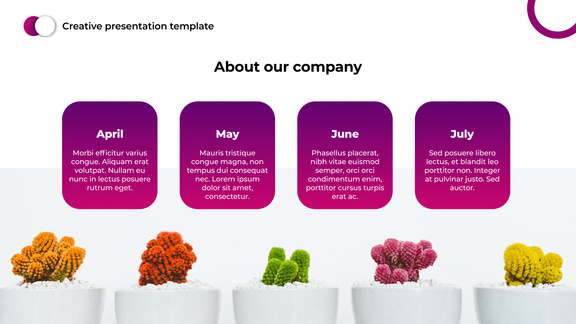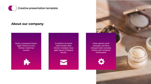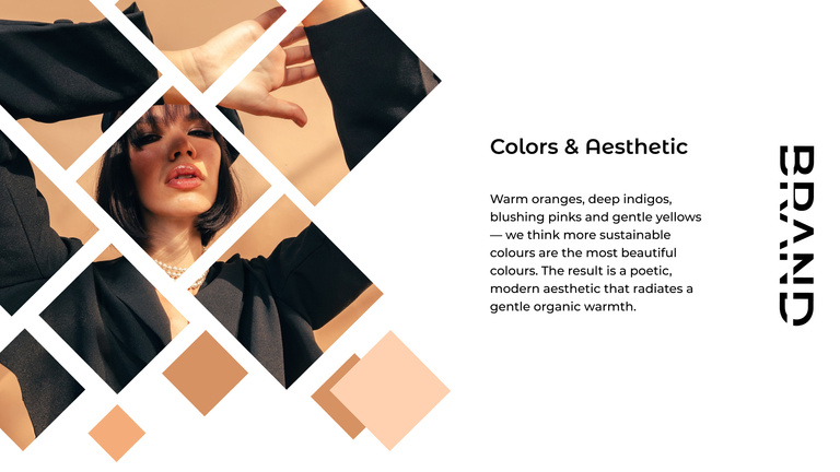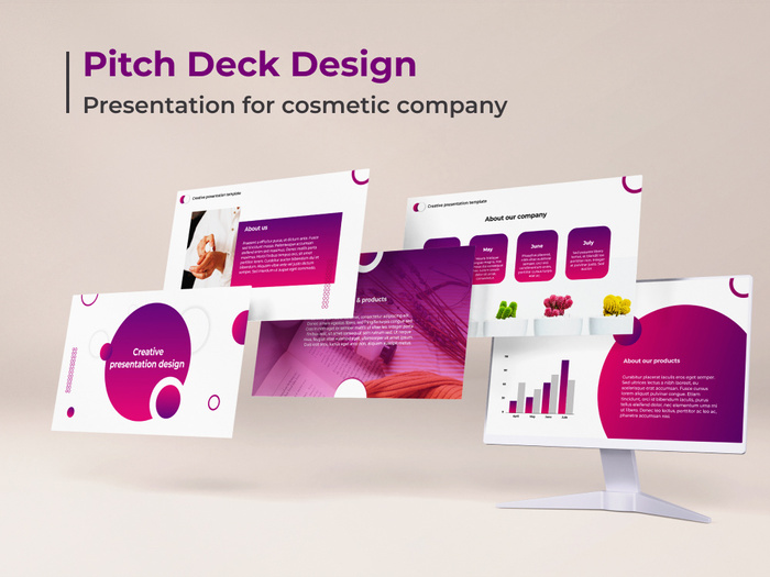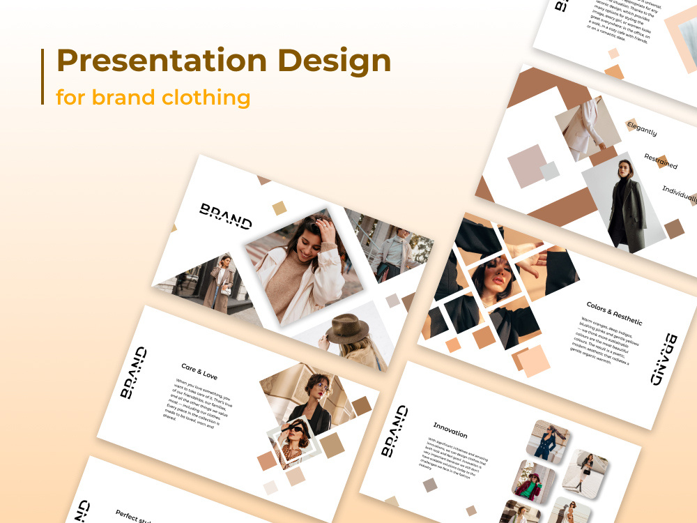 Project goal creation of a company profile presentation for public speaking to show brand novelties using a palette of corporate colors.